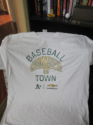 If you know me, I am a huge A's fan and I have been doing some organizing and I found a bunch of A's T-Shirts that were give-a-ways in one fashion or another and I just saved them: